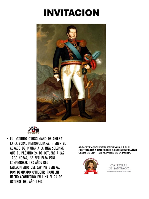Instituto O´higginiano de Chile y la catedral metropolitana, tienen el agrado de invitar a la misa solemne